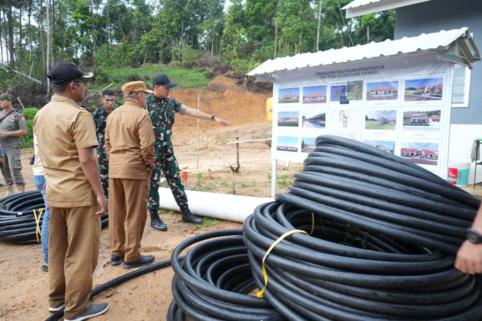 Kotabaru, Borneopos.com - Bupati Kotabaru Muhammad Rusli, S. Sos meninjau langsung progres pembangunan Batalyon Infanteri Teritorial Pembangunan (Yonif TP) 884/Sa-ijaan, sebagai wujud sinergi kuat Pemerintah Daerah mendukung TNI untuk perkuat pertahanan di daerah dan mendukung program nasional.